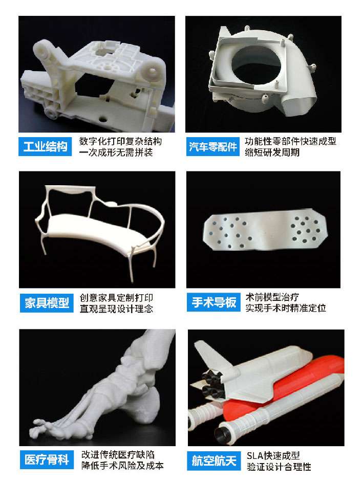 極光工業(yè)級(jí)SLA光固化3D打印機(jī)更是適配多種耗材,它支持透明、耐高溫、高強(qiáng)度等不同屬性的樹(shù)脂耗材,全方位滿(mǎn)足各行業(yè)客戶(hù)對(duì)材料特性的需求。廣泛用于醫(yī)療、文創(chuàng)、汽車(chē)、建筑、工業(yè)、航空航天、鞋類(lèi)生產(chǎn)、教育、動(dòng)漫等眾多領(lǐng)域。