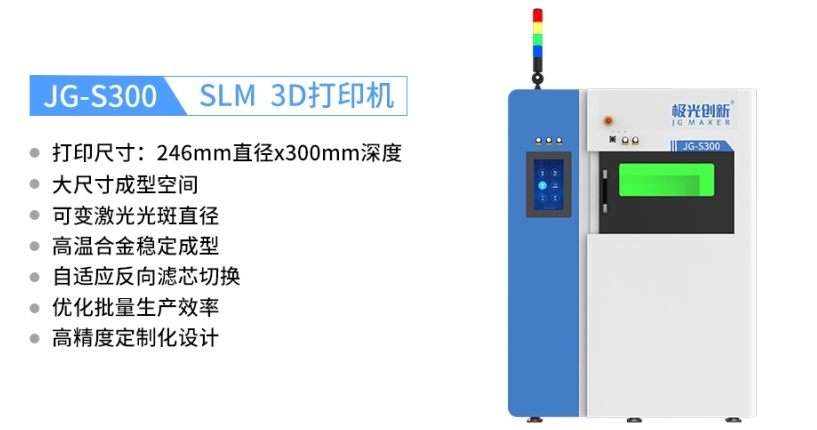 極光創(chuàng)新SLM成型系列JG-S180、JG-S300、JG-S255等金屬3D打印機均具備多種金屬材料打印能力,不僅可以打印鋁合金材料,還可成功打印不銹鋼、高溫合金、鈦合金、高熵合金等金屬材料,并且可以直接制成傳統(tǒng)工藝方法難以制造甚至無法制造的復雜金屬終端產(chǎn)品,致密度最高可達99.98%,可有效提高金屬材料的利用率,降低制造成本。