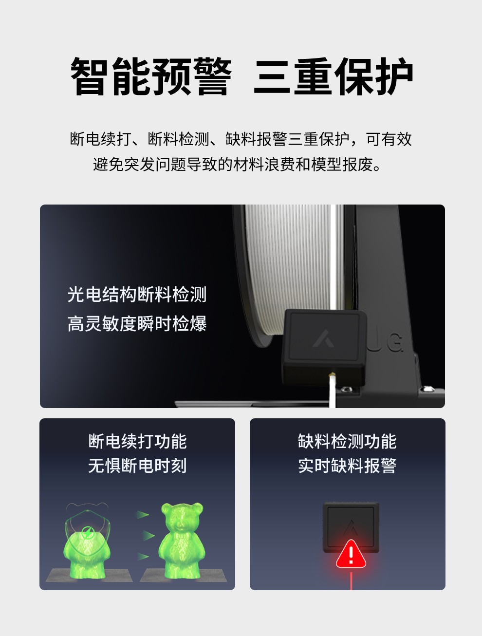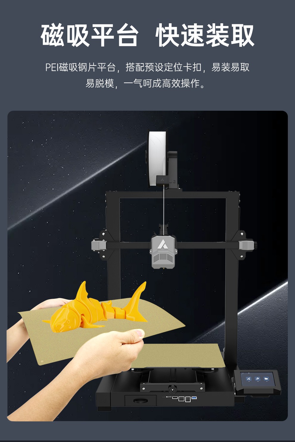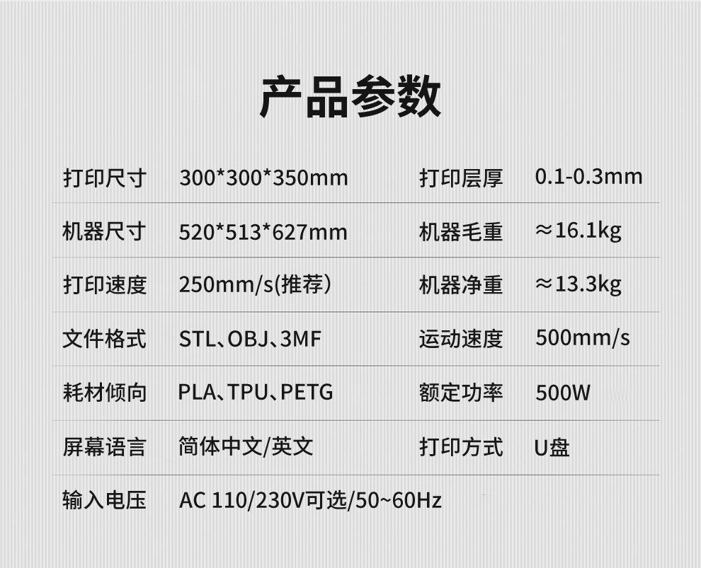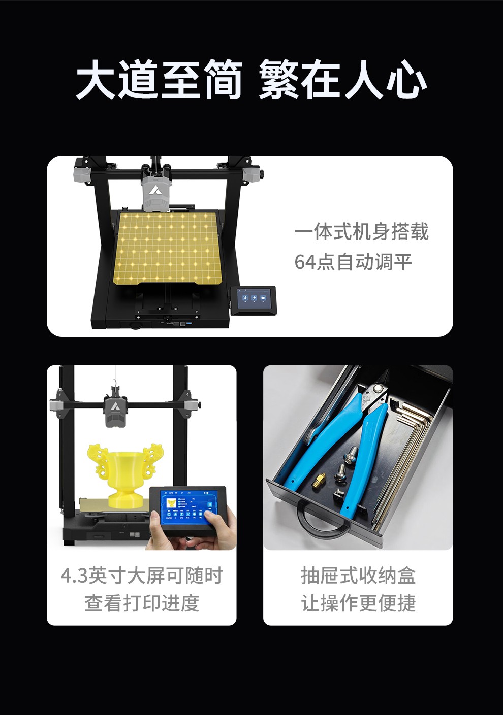 300*300*350mm最大成型空間·9.5倍放大擠出,使出料更均勻,成型更出色,搭載智能風(fēng)扇控制系統(tǒng),讓高達(dá)8500r/min的轉(zhuǎn)速降低噪音,還可以模型散熱更全面的同時(shí)高速打印