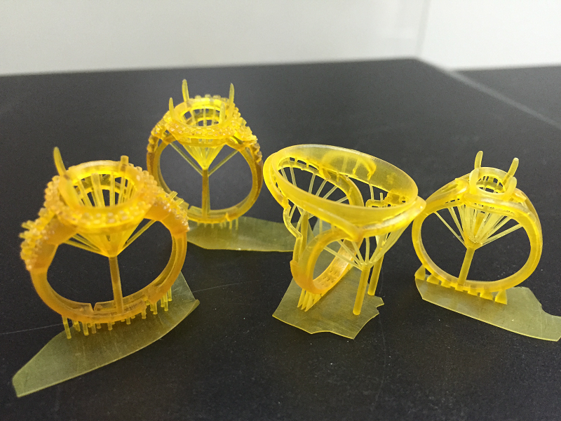 高深點講,光敏樹脂是由光引發劑,單體聚合物與預聚體組成的混合物,這種材料可在特定波長紫外光聚焦下完成固化,一般用于SLA/DLP機型之中。使用光敏樹脂材料打印出來的物品,表面較為光滑、成型質量高,所以許多DLP機型被定為珠寶級別。