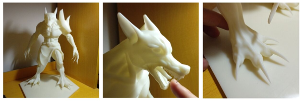3D打印狼人模型,體積約231x157x290mm,是邵陽職業(yè)技術(shù)學(xué)院大三學(xué)生的畢業(yè)設(shè)計(jì)作品。出于對(duì)打印精度與成型效率的要求,該學(xué)生選擇極光爾沃SLA型3D打印機(jī)與白色光敏樹脂打印這款模型,整個(gè)過程只耗時(shí)20h左右,最終成品不僅精細(xì)度超過預(yù)期,而且高度還原了原始的設(shè)計(jì)效果。