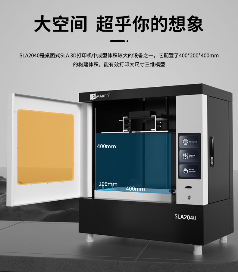 大空間 400*200*400mm xy分辨率25μm 層厚度25-200μm