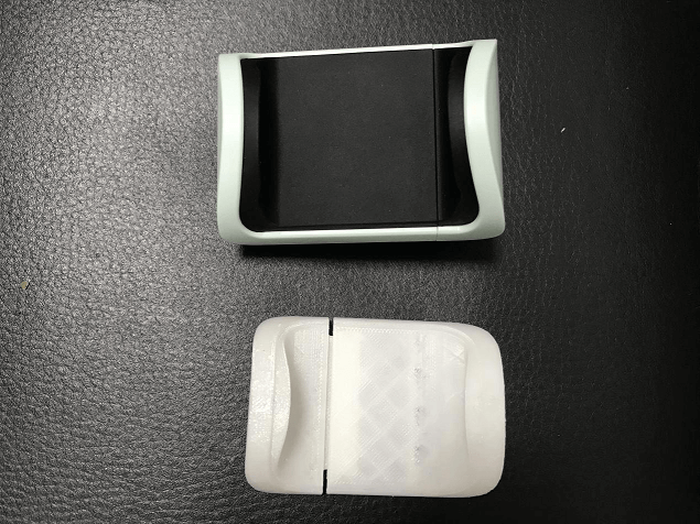 3D打印手機(jī)殼白模展示,對(duì)比實(shí)物圖,可以看得出來(lái),大小尺寸經(jīng)過(guò)研發(fā)工程師的修改,更合適配套新款手機(jī)尺寸。