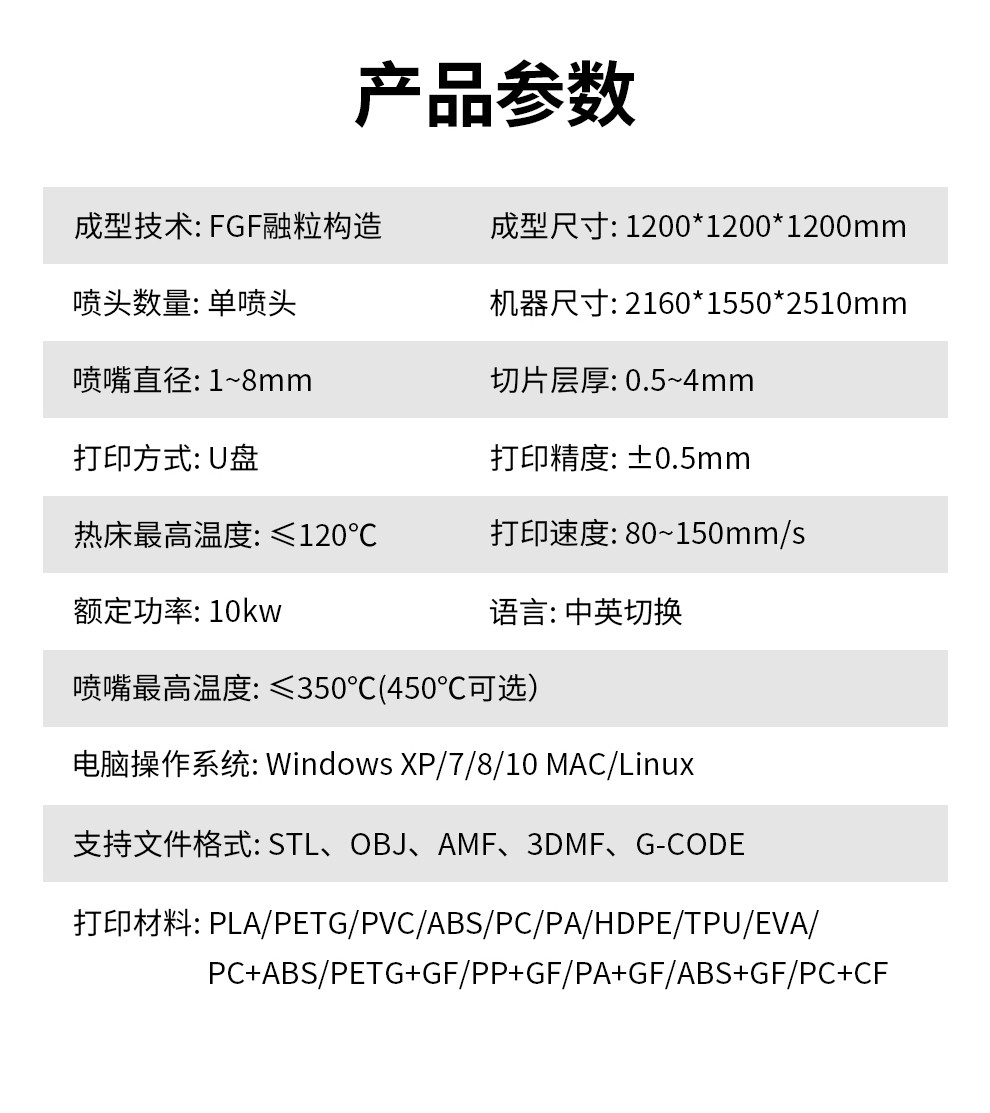 1.2米超大打印尺寸,低成本滿足大規格工業模型及零部件成品的打印需求